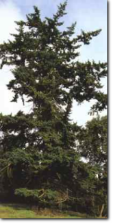 Holzbeschreibung: Splint- und Kernholz farblich deutlich unterschieden. Das Splintholz von gelblicher bis rötlichweißer Farbe. Das Kernholz frisch gelblichbraun bis rötlichgelb, im Licht stark braunrot nachdunkelnd und dem Lärchenholz sehr ähnlich. Mit markanter gestreifter bzw. gefladerter Zeichnung.
